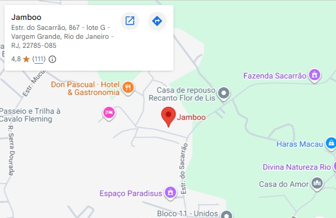 O Jamboo é um espaço localizado no bairro de Vargem Grande, zona oeste do Rio de Janeiro, cercado de muito verde, próximo a maior floresta urbana do Mundo, o Parque Estadual da Pedra Branca.